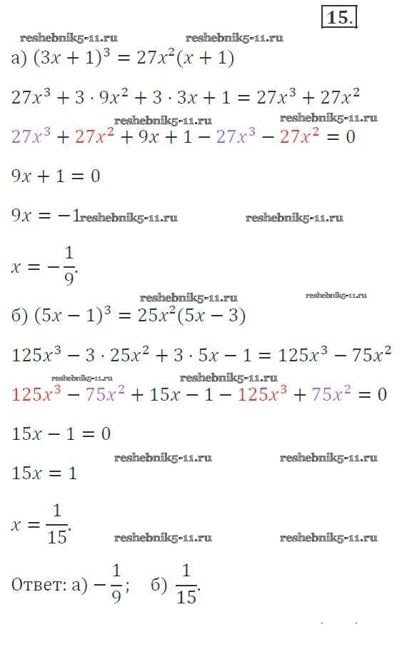 Готовая домашняя работа с ответами по Алгебре за 7 класс Миндюк, Шлыкова Рабочая тетрадь УМК Часть 1, 2 Просвещение 2017 ФГОС - §28. Возведение в квадрат и в куб суммы и разности двух выражений 15