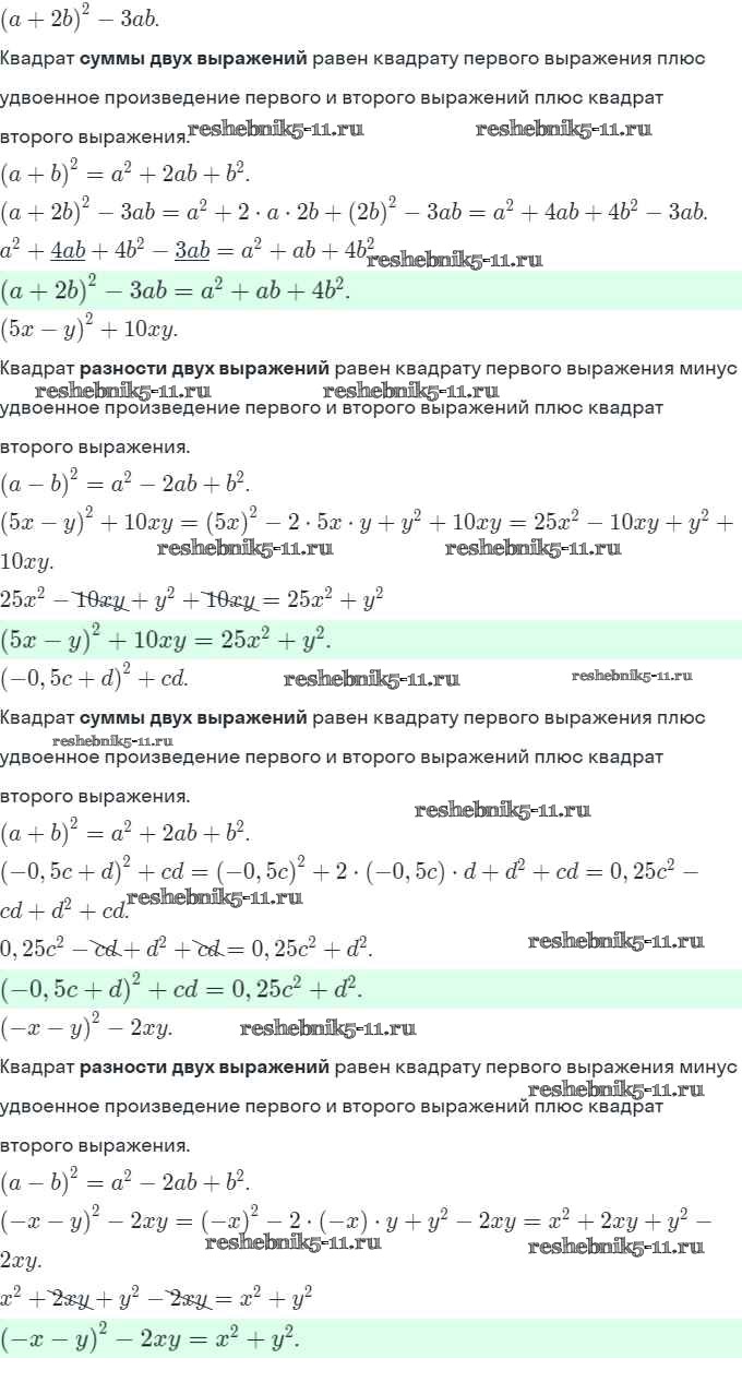 §28. Возведение в квадрат и в куб суммы и разности двух выражений