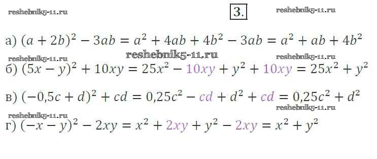 Готовая домашняя работа с ответами по Алгебре за 7 класс Миндюк, Шлыкова Рабочая тетрадь УМК Часть 1, 2 Просвещение 2017 ФГОС - §28. Возведение в квадрат и в куб суммы и разности двух выражений 3
