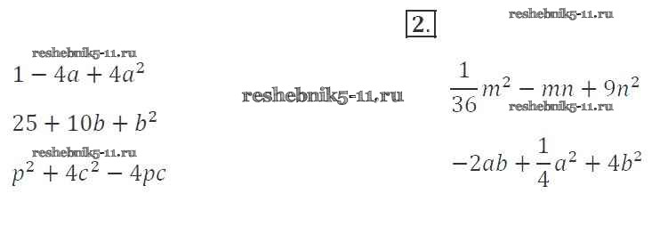 Готовая домашняя работа с ответами по Алгебре за 7 класс Миндюк, Шлыкова Рабочая тетрадь УМК Часть 1, 2 Просвещение 2017 ФГОС - §29. Разложение на множители с помощью формул квадрата суммы и квадрата разности 2