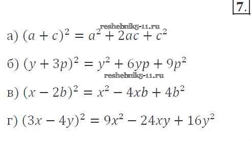 Готовая домашняя работа с ответами по Алгебре за 7 класс Миндюк, Шлыкова Рабочая тетрадь УМК Часть 1, 2 Просвещение 2017 ФГОС - §29. Разложение на множители с помощью формул квадрата суммы и квадрата разности 7