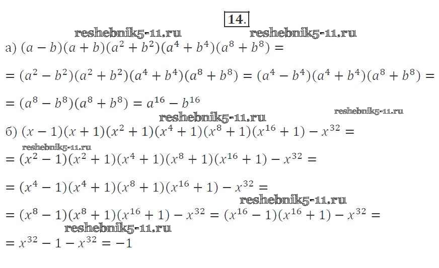 Готовая домашняя работа с ответами по Алгебре за 7 класс Миндюк, Шлыкова Рабочая тетрадь УМК Часть 1, 2 Просвещение 2017 ФГОС - §30. Умножение разности двух выражений на их сумму 14