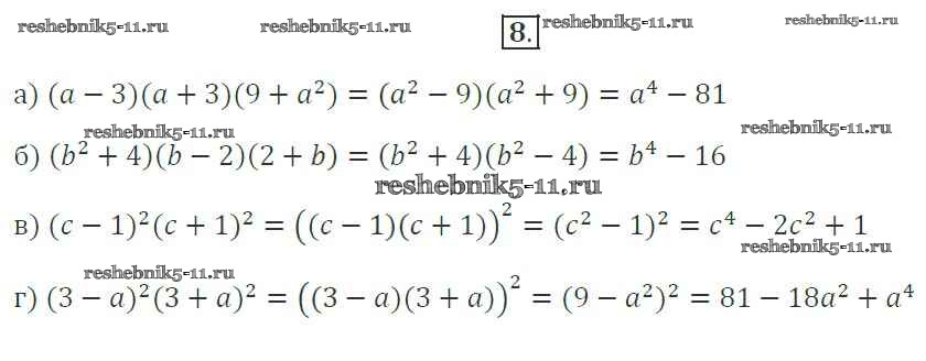 Готовая домашняя работа с ответами по Алгебре за 7 класс Миндюк, Шлыкова Рабочая тетрадь УМК Часть 1, 2 Просвещение 2017 ФГОС - §30. Умножение разности двух выражений на их сумму 8