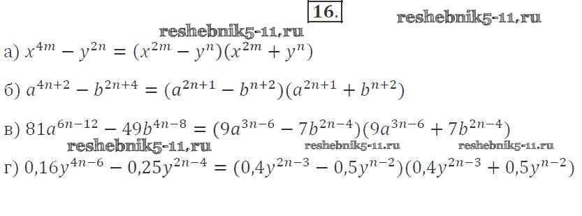 Готовая домашняя работа с ответами по Алгебре за 7 класс Миндюк, Шлыкова Рабочая тетрадь УМК Часть 1, 2 Просвещение 2017 ФГОС - §31. Разложение разности квадратов на множители 16