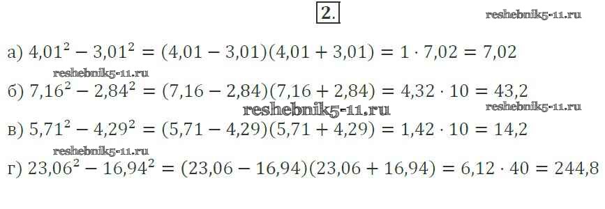Готовая домашняя работа с ответами по Алгебре за 7 класс Миндюк, Шлыкова Рабочая тетрадь УМК Часть 1, 2 Просвещение 2017 ФГОС - §31. Разложение разности квадратов на множители 2