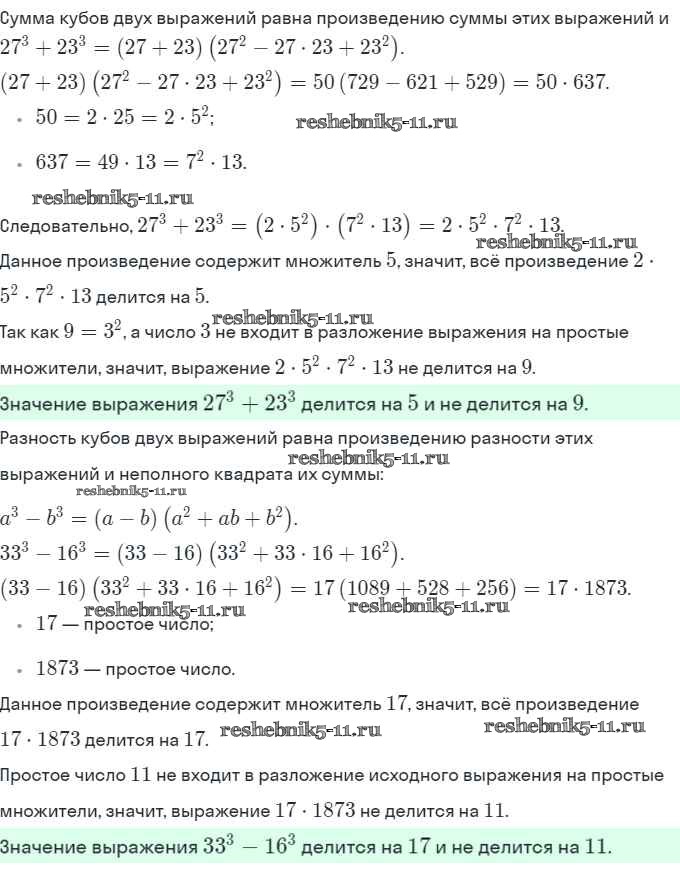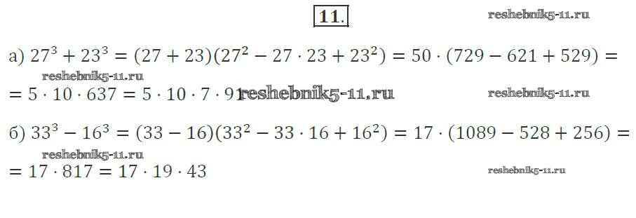 Готовая домашняя работа с ответами по Алгебре за 7 класс Миндюк, Шлыкова Рабочая тетрадь УМК Часть 1, 2 Просвещение 2017 ФГОС - §32. Разложение на множители суммы и разности кубов 11