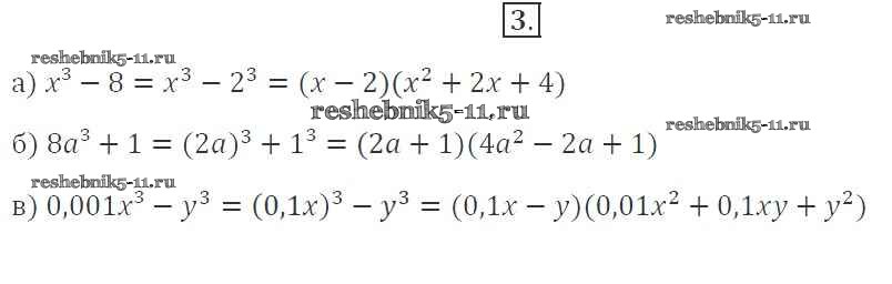 Готовая домашняя работа с ответами по Алгебре за 7 класс Миндюк, Шлыкова Рабочая тетрадь УМК Часть 1, 2 Просвещение 2017 ФГОС - §32. Разложение на множители суммы и разности кубов 3