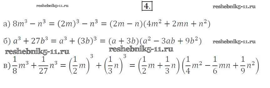 Готовая домашняя работа с ответами по Алгебре за 7 класс Миндюк, Шлыкова Рабочая тетрадь УМК Часть 1, 2 Просвещение 2017 ФГОС - §32. Разложение на множители суммы и разности кубов 4