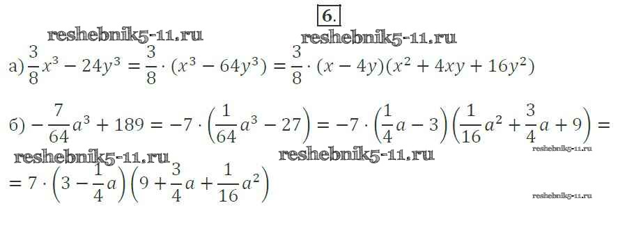 Готовая домашняя работа с ответами по Алгебре за 7 класс Миндюк, Шлыкова Рабочая тетрадь УМК Часть 1, 2 Просвещение 2017 ФГОС - §32. Разложение на множители суммы и разности кубов 6