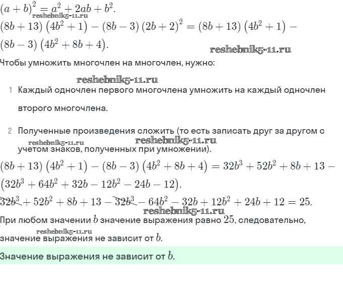 Готовая домашняя работа с ответами по Алгебре за 7 класс Миндюк, Шлыкова Рабочая тетрадь УМК Часть 1, 2 Просвещение 2017 ФГОС - §33. Преобразование целого выражения в многочлен 10