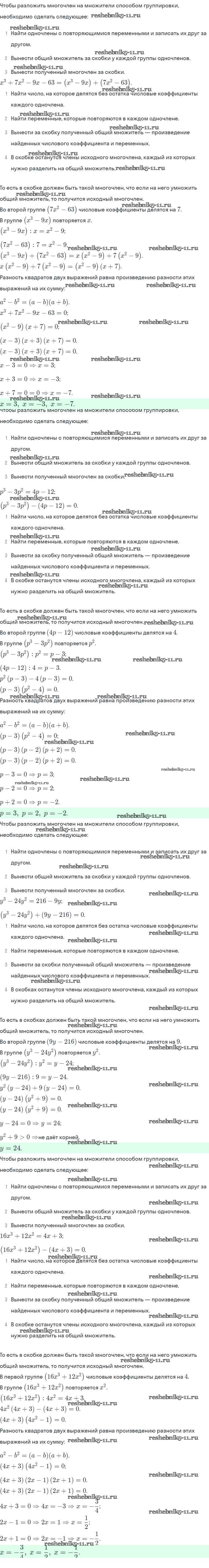 Готовая домашняя работа с ответами по Алгебре за 7 класс Миндюк, Шлыкова Рабочая тетрадь УМК Часть 1, 2 Просвещение 2017 ФГОС - §34. Применение различных способов для разложения на множители 9