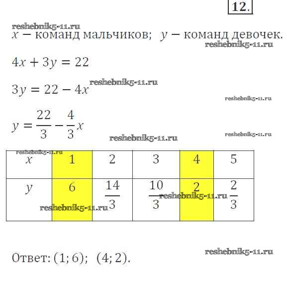 Готовая домашняя работа с ответами по Алгебре за 7 класс Миндюк, Шлыкова Рабочая тетрадь УМК Часть 1, 2 Просвещение 2017 ФГОС - §35. Линейное уравнение с двумя переменными 12