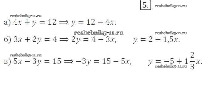 Готовая домашняя работа с ответами по Алгебре за 7 класс Миндюк, Шлыкова Рабочая тетрадь УМК Часть 1, 2 Просвещение 2017 ФГОС - §35. Линейное уравнение с двумя переменными 5
