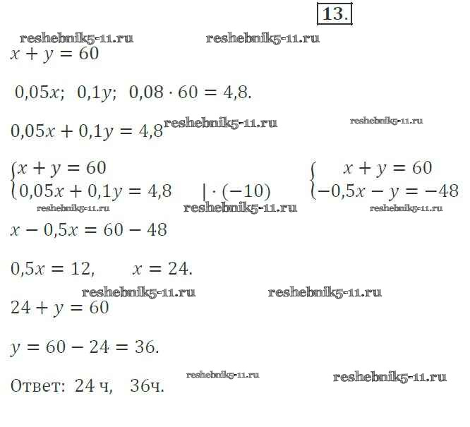 Готовая домашняя работа с ответами по Алгебре за 7 класс Миндюк, Шлыкова Рабочая тетрадь УМК Часть 1, 2 Просвещение 2017 ФГОС - §40. Решение задач с помощью систем уравнений 13