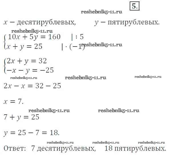 Готовая домашняя работа с ответами по Алгебре за 7 класс Миндюк, Шлыкова Рабочая тетрадь УМК Часть 1, 2 Просвещение 2017 ФГОС - §40. Решение задач с помощью систем уравнений 5