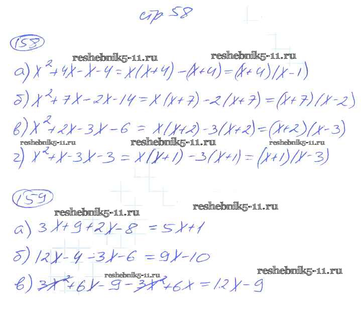 Готовая домашняя работа с ответами по Алгебре за 7 класс Потапов, Шевкин Рабочая тетрадь МГУ - школе Часть 1, 2 Просвещение 2018 ФГОС - Часть 1. Страницы 58