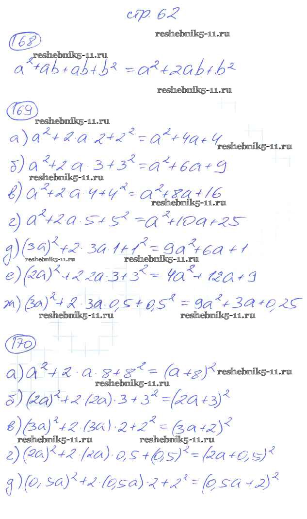 Готовая домашняя работа с ответами по Алгебре за 7 класс Потапов, Шевкин Рабочая тетрадь МГУ - школе Часть 1, 2 Просвещение 2018 ФГОС - Часть 1. Страницы 62