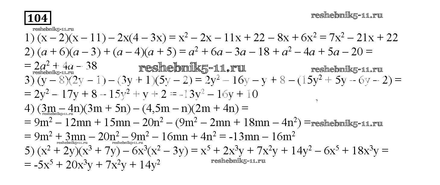 Готовая домашняя работа с ответами по Алгебре за 7 класс Мерзляк, Полонский, Рабинович, Якир Дидактические материалы УМК Вентана-граф 2017 ФГОС - Вариант 1 104
