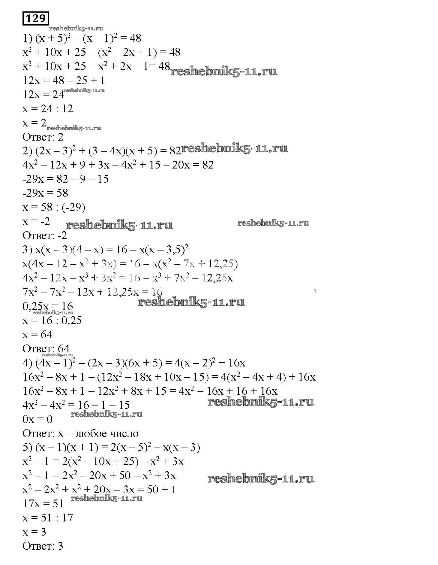 Готовая домашняя работа с ответами по Алгебре за 7 класс Мерзляк, Полонский, Рабинович, Якир Дидактические материалы УМК Вентана-граф 2017 ФГОС - Вариант 1 129