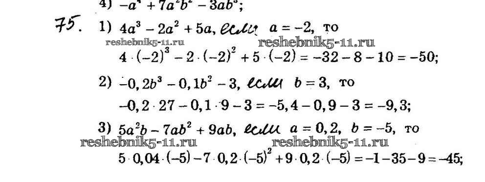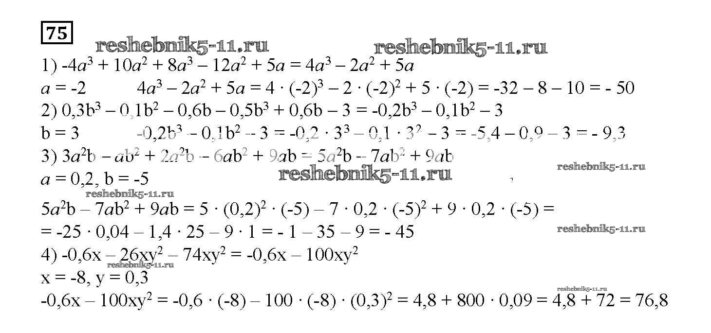 Готовая домашняя работа с ответами по Алгебре за 7 класс Мерзляк, Полонский, Рабинович, Якир Дидактические материалы УМК Вентана-граф 2017 ФГОС - Вариант 1 75