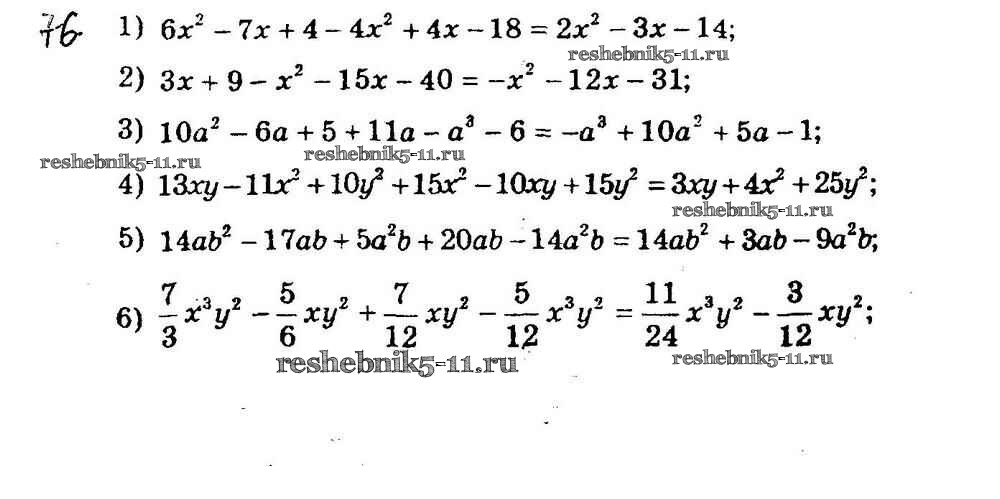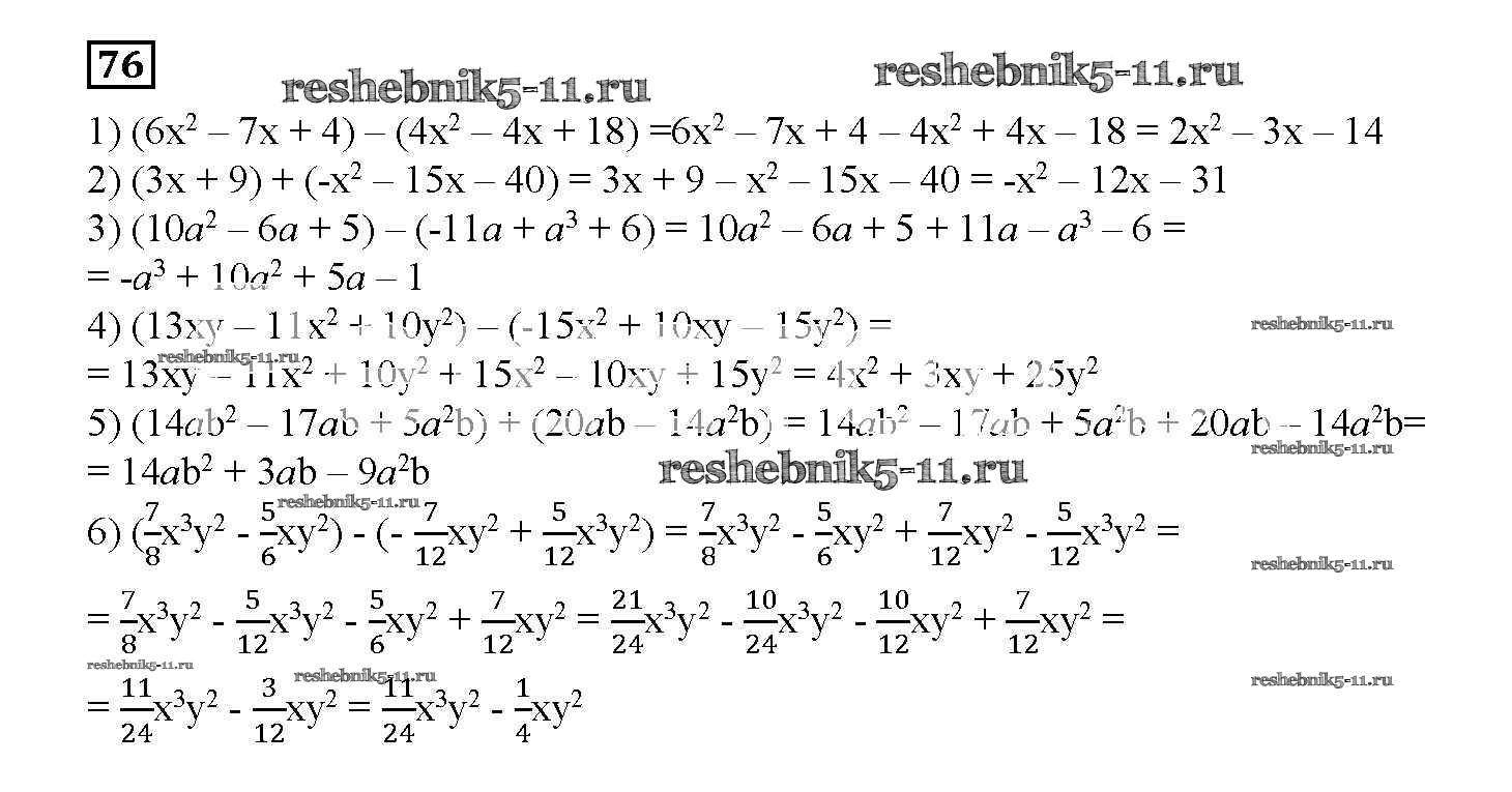Готовая домашняя работа с ответами по Алгебре за 7 класс Мерзляк, Полонский, Рабинович, Якир Дидактические материалы УМК Вентана-граф 2017 ФГОС - Вариант 1 76