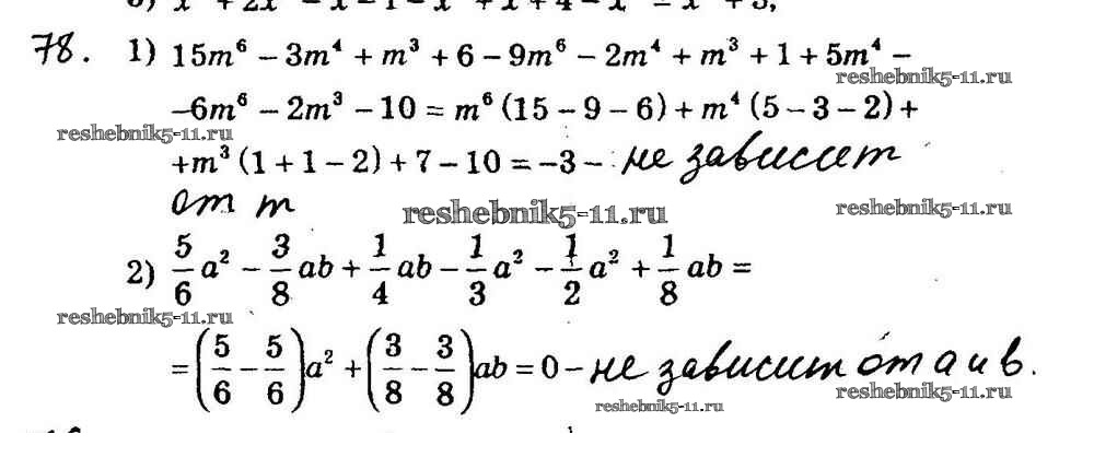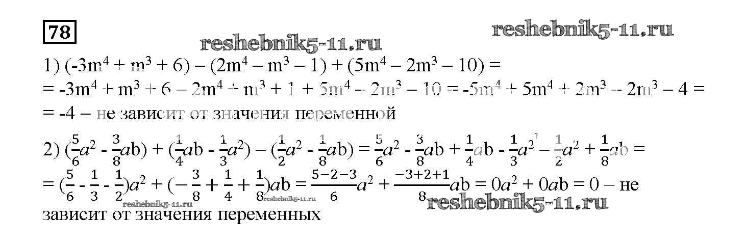 Готовая домашняя работа с ответами по Алгебре за 7 класс Мерзляк, Полонский, Рабинович, Якир Дидактические материалы УМК Вентана-граф 2017 ФГОС - Вариант 1 78