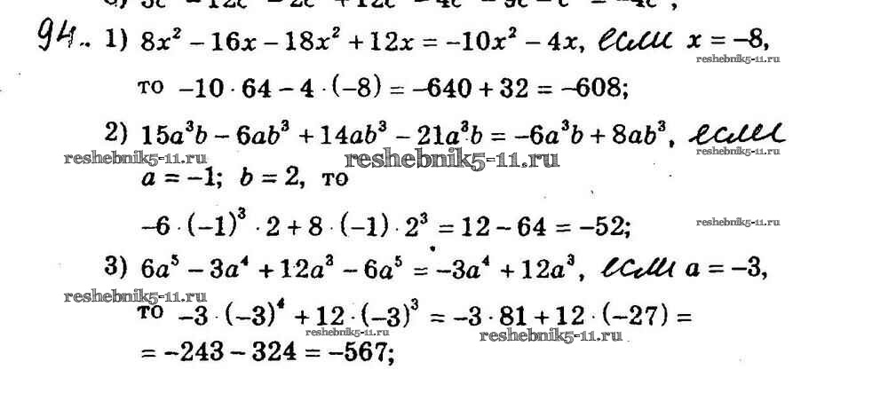Готовая домашняя работа с ответами по Алгебре за 7 класс Мерзляк, Полонский, Рабинович, Якир Дидактические материалы УМК Вентана-граф 2017 ФГОС - Вариант 1 94