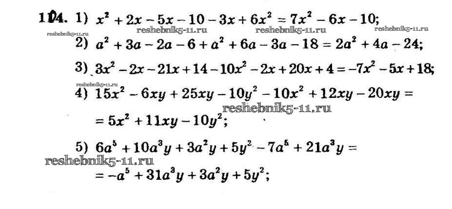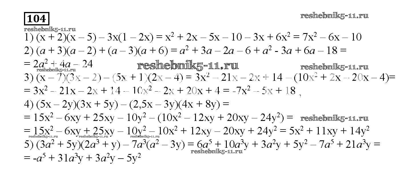Готовая домашняя работа с ответами по Алгебре за 7 класс Мерзляк, Полонский, Рабинович, Якир Дидактические материалы УМК Вентана-граф 2017 ФГОС - Вариант 2 104