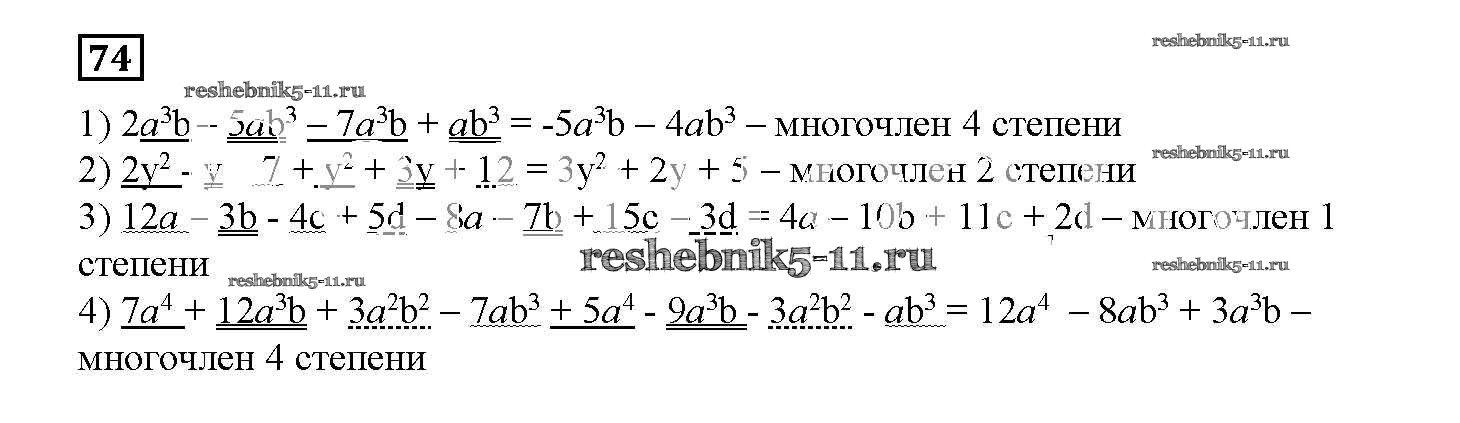 Готовая домашняя работа с ответами по Алгебре за 7 класс Мерзляк, Полонский, Рабинович, Якир Дидактические материалы УМК Вентана-граф 2017 ФГОС - Вариант 2 74