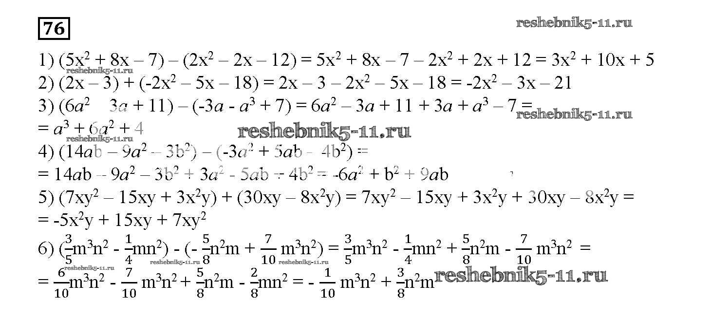 Готовая домашняя работа с ответами по Алгебре за 7 класс Мерзляк, Полонский, Рабинович, Якир Дидактические материалы УМК Вентана-граф 2017 ФГОС - Вариант 2 76