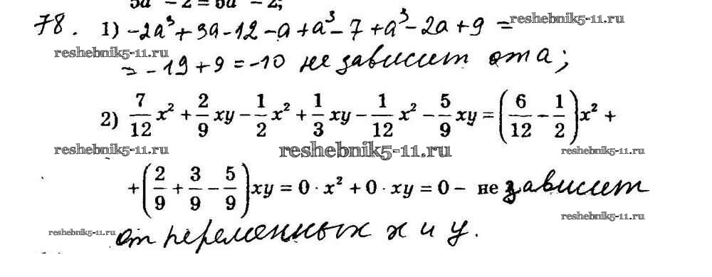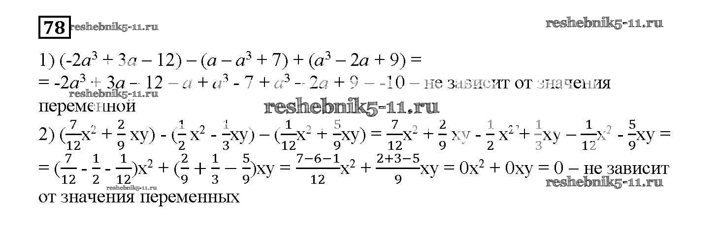 Готовая домашняя работа с ответами по Алгебре за 7 класс Мерзляк, Полонский, Рабинович, Якир Дидактические материалы УМК Вентана-граф 2017 ФГОС - Вариант 2 78