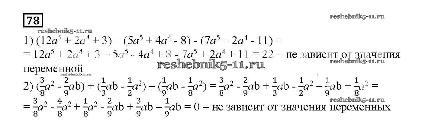 Готовая домашняя работа с ответами по Алгебре за 7 класс Мерзляк, Полонский, Рабинович, Якир Дидактические материалы УМК Вентана-граф 2017 ФГОС - Вариант 3 78