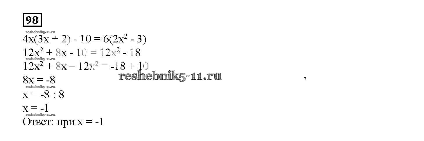 Готовая домашняя работа с ответами по Алгебре за 7 класс Мерзляк, Полонский, Рабинович, Якир Дидактические материалы УМК Вентана-граф 2017 ФГОС - Вариант 3 98