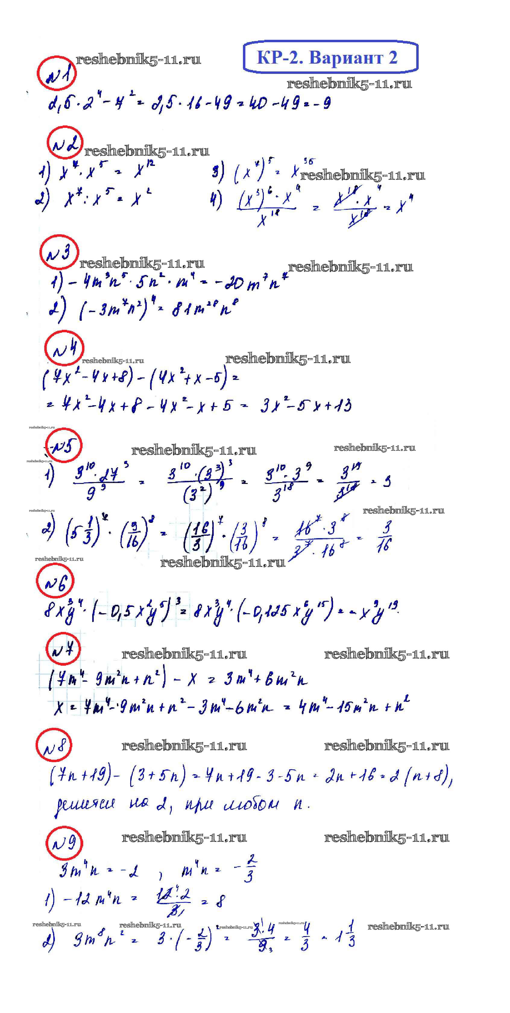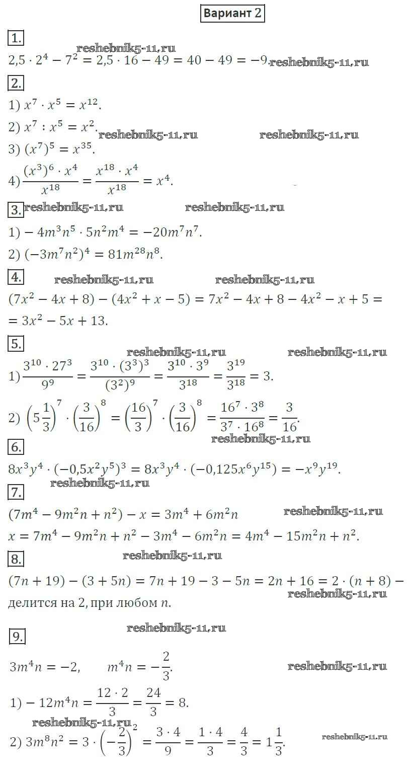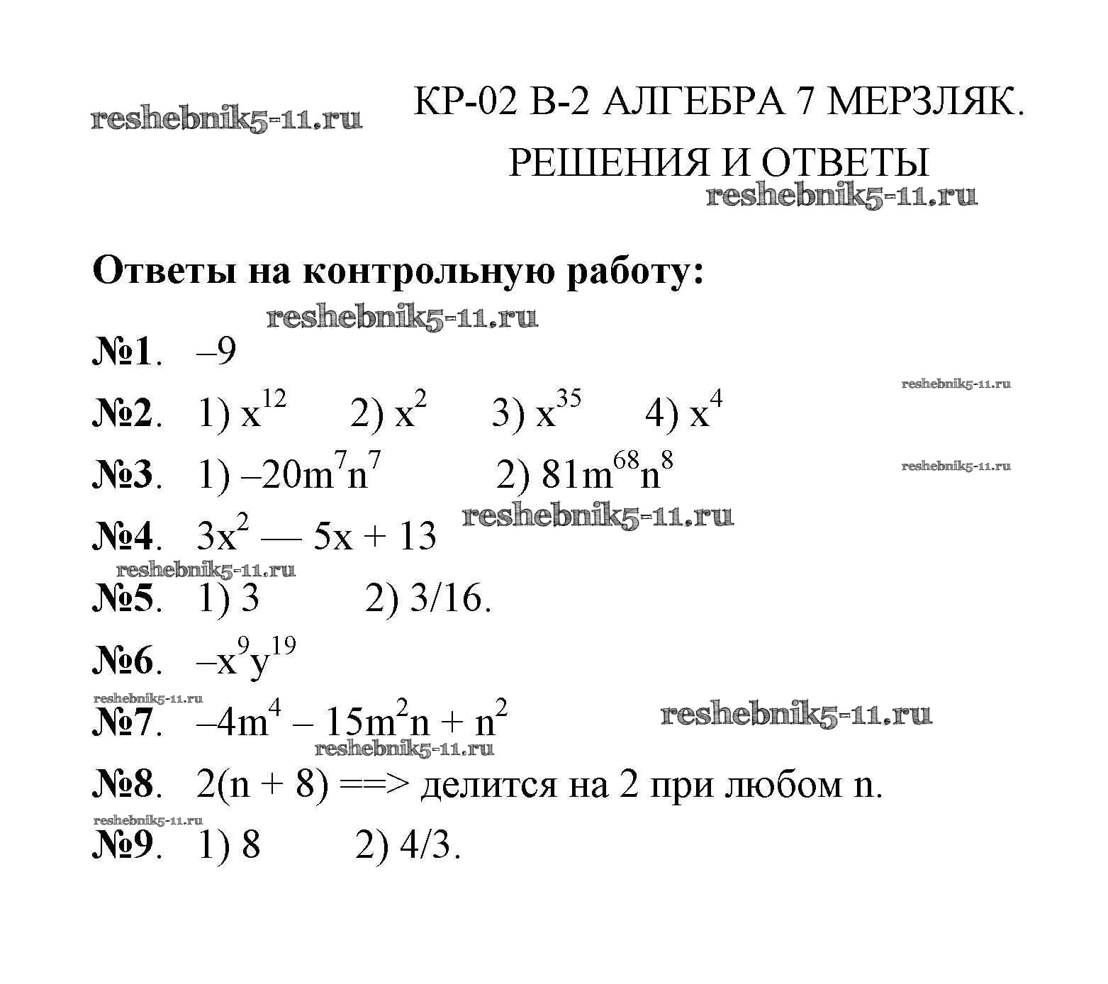 Готовая домашняя работа с ответами по Алгебре за 7 класс Мерзляк, Полонский, Рабинович, Якир Дидактические материалы УМК Вентана-граф 2017 ФГОС - КР-2. Варианты 2