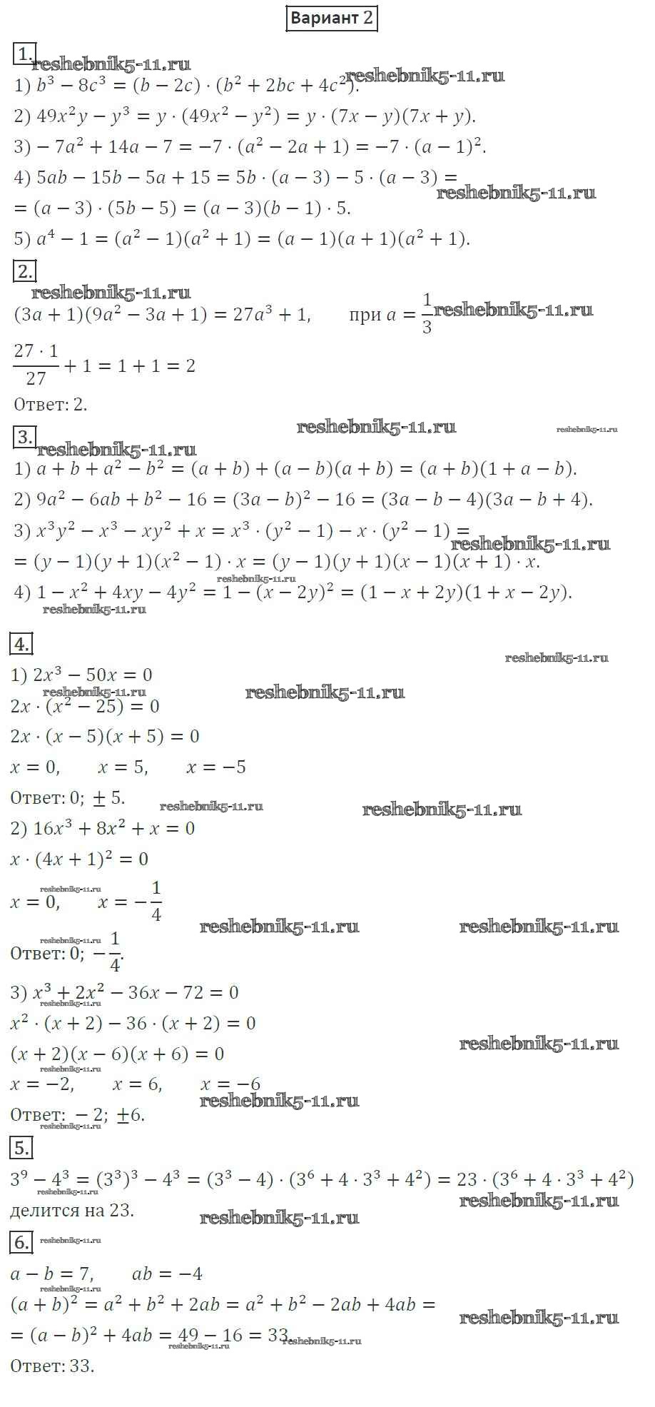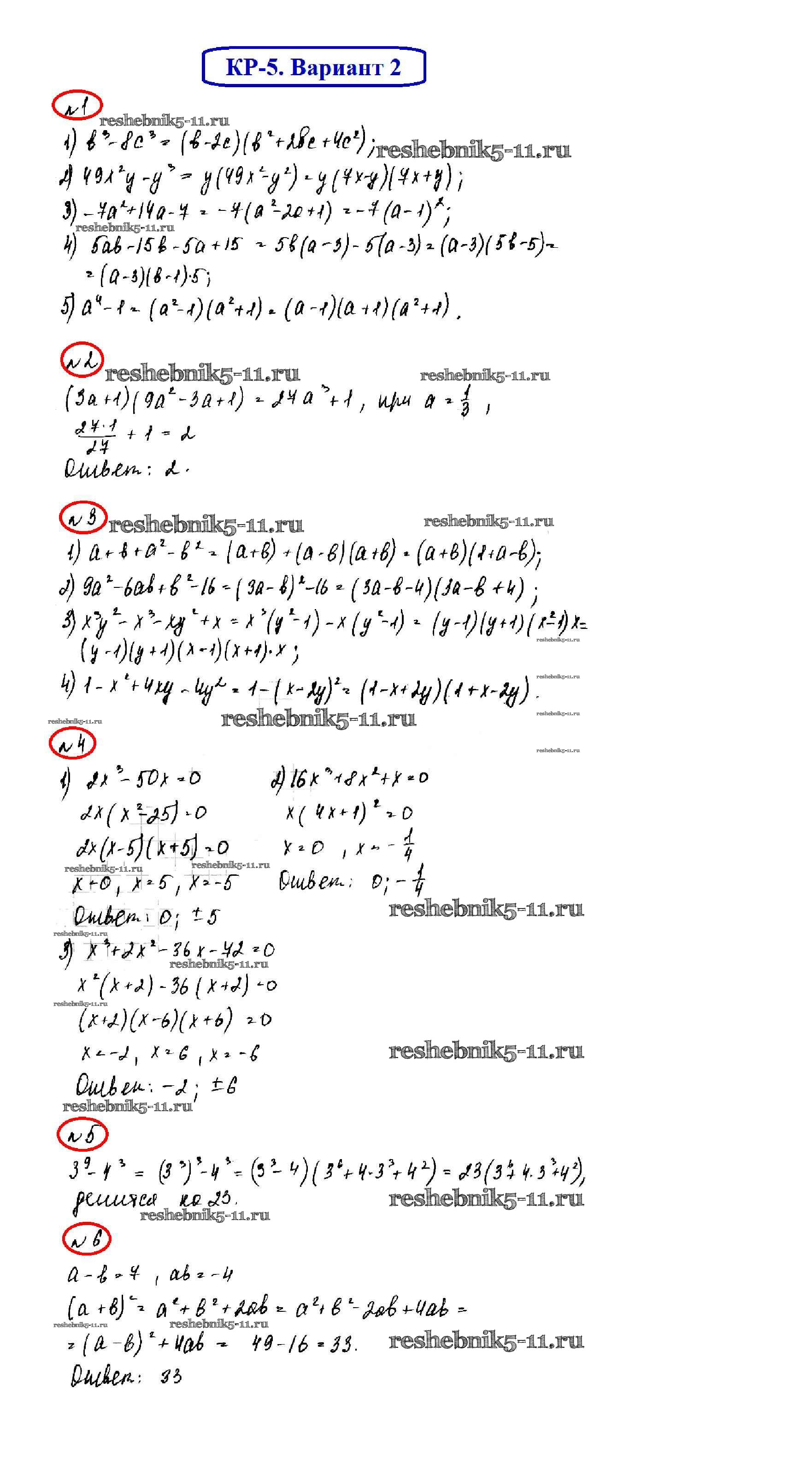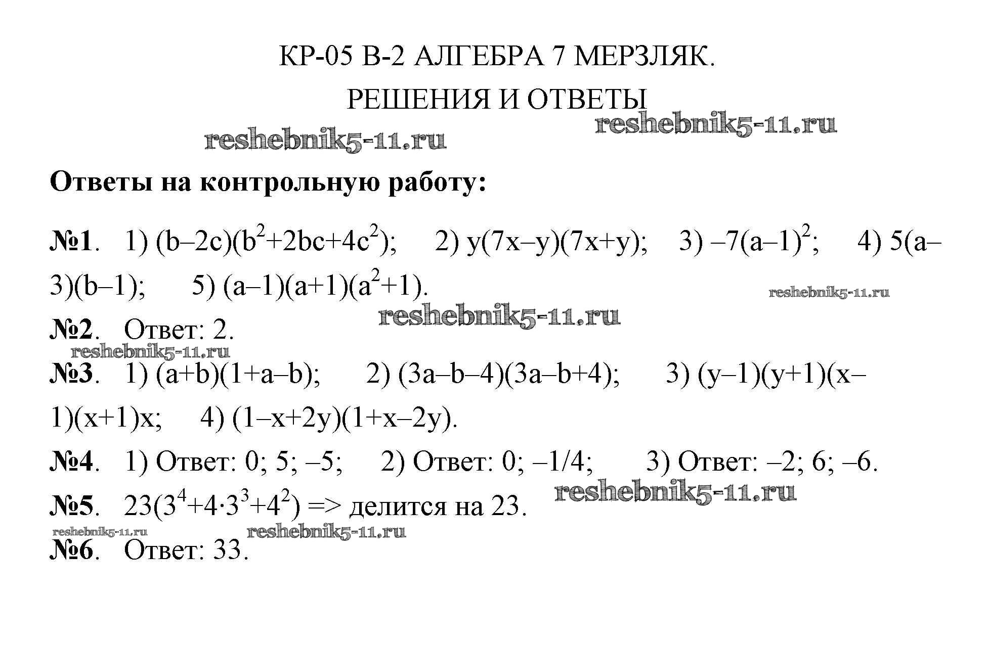 Готовая домашняя работа с ответами по Алгебре за 7 класс Мерзляк, Полонский, Рабинович, Якир Дидактические материалы УМК Вентана-граф 2017 ФГОС - КР-5. Варианты 2