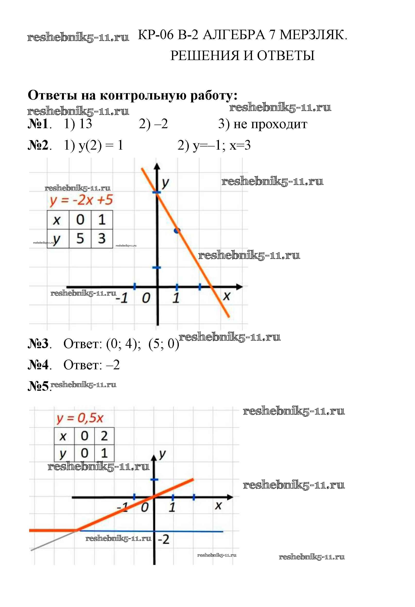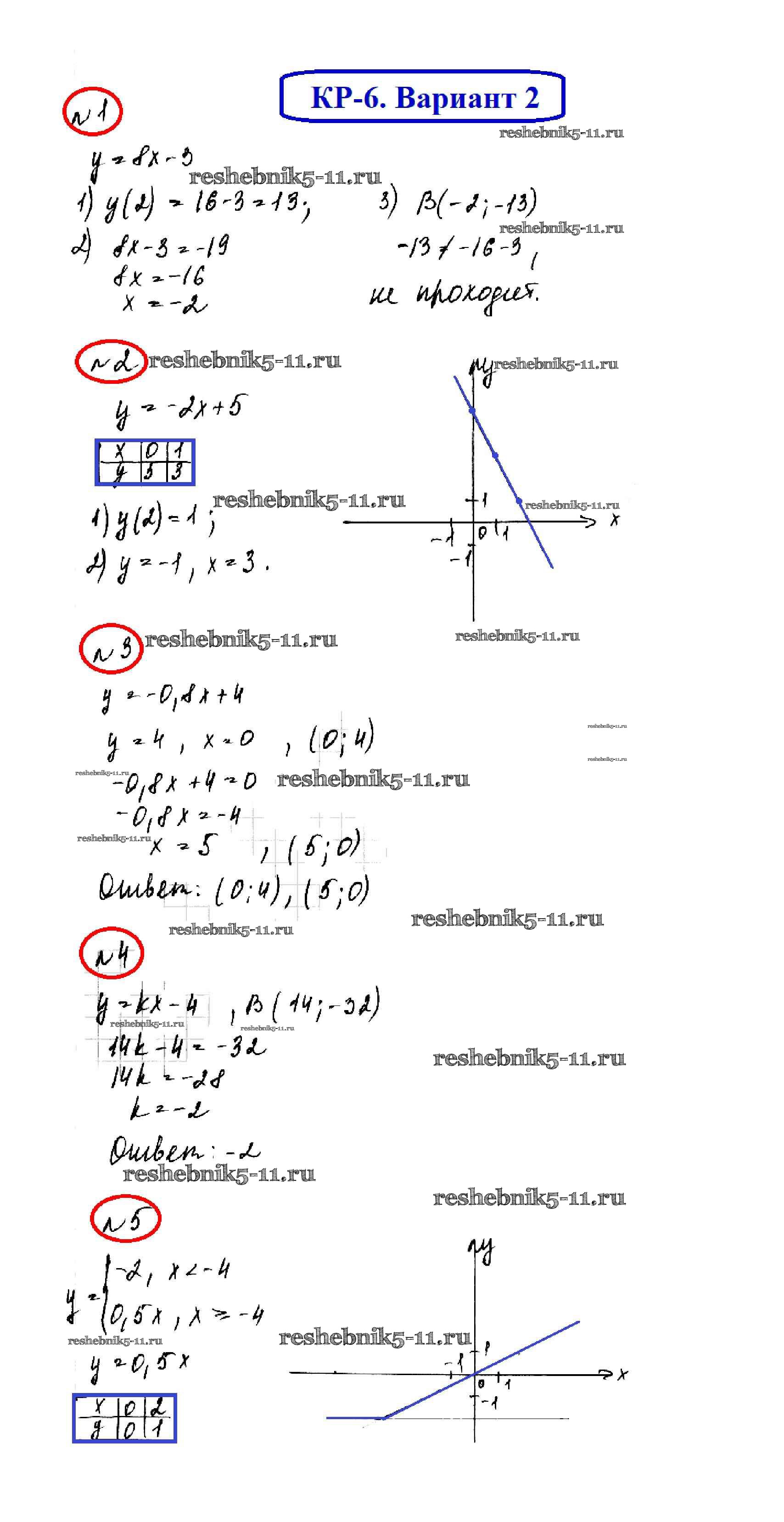 Готовая домашняя работа с ответами по Алгебре за 7 класс Мерзляк, Полонский, Рабинович, Якир Дидактические материалы УМК Вентана-граф 2017 ФГОС - КР-6. Варианты 2