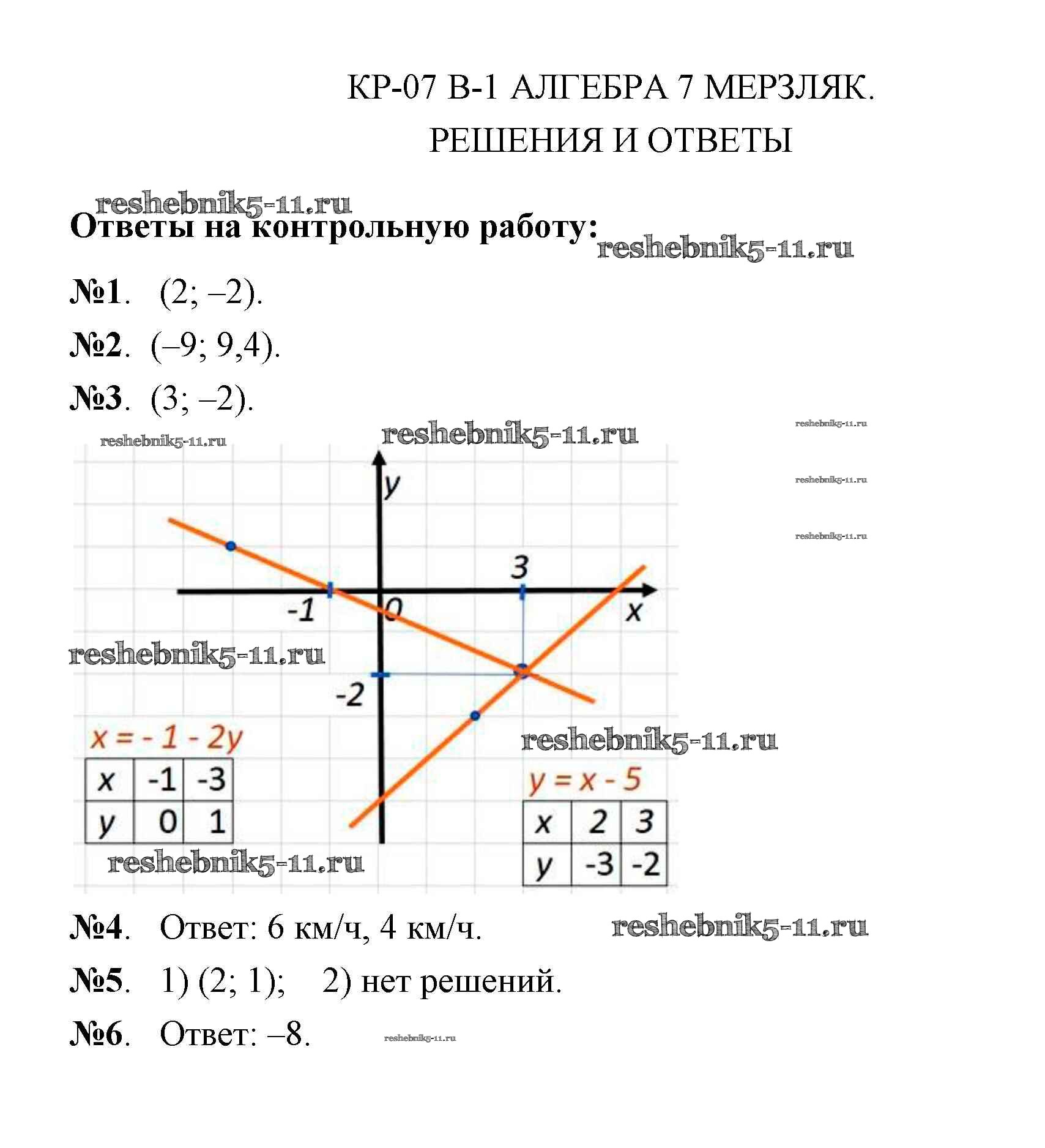 Готовая домашняя работа с ответами по Алгебре за 7 класс Мерзляк, Полонский, Рабинович, Якир Дидактические материалы УМК Вентана-граф 2017 ФГОС - КР-7. Варианты 1