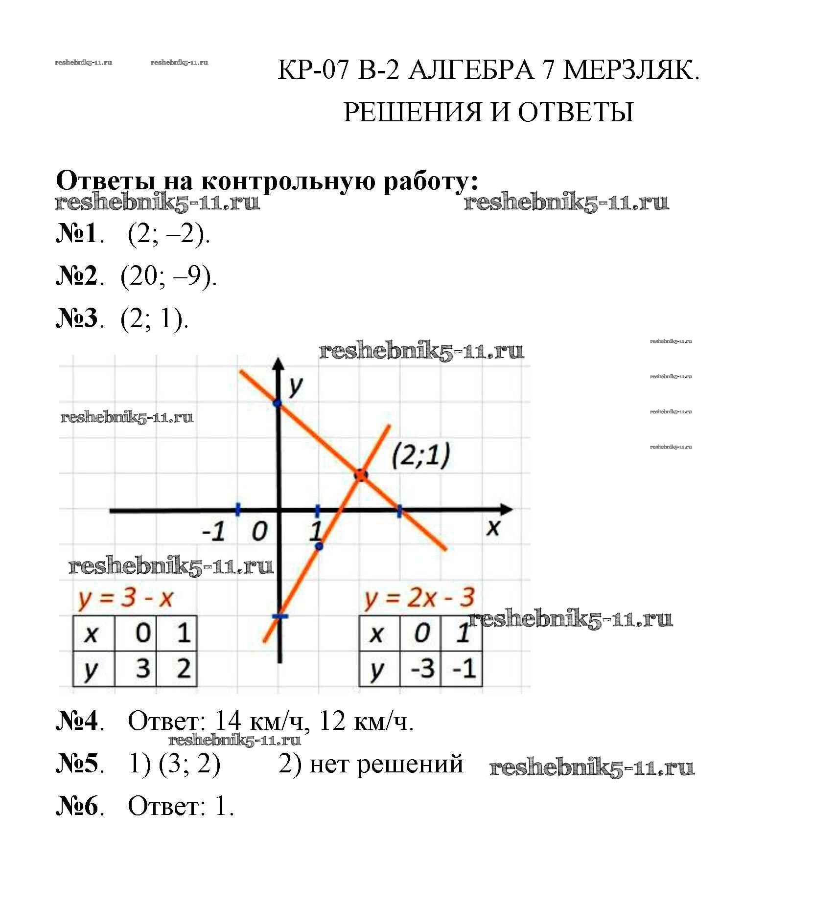 Готовая домашняя работа с ответами по Алгебре за 7 класс Мерзляк, Полонский, Рабинович, Якир Дидактические материалы УМК Вентана-граф 2017 ФГОС - КР-7. Варианты 2