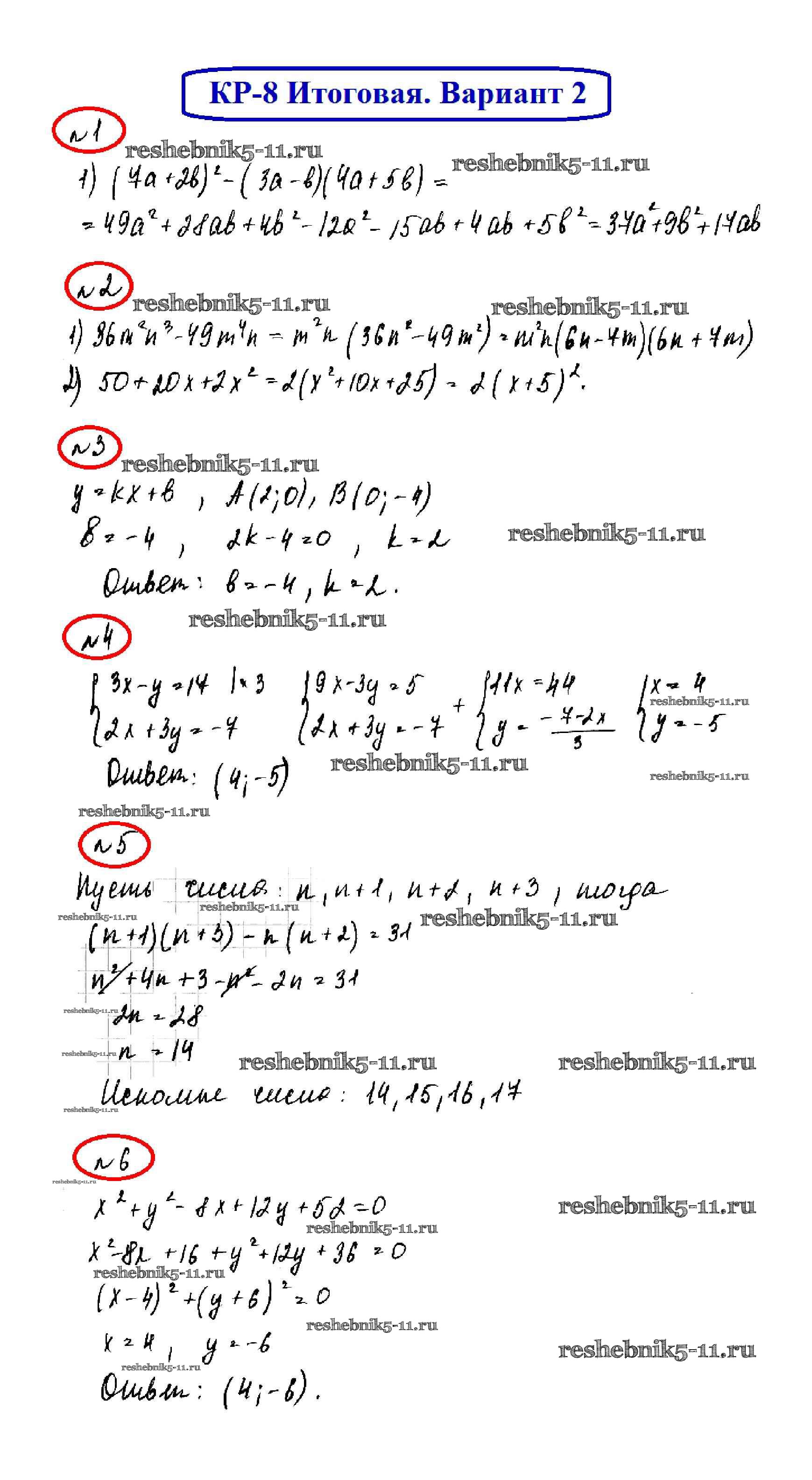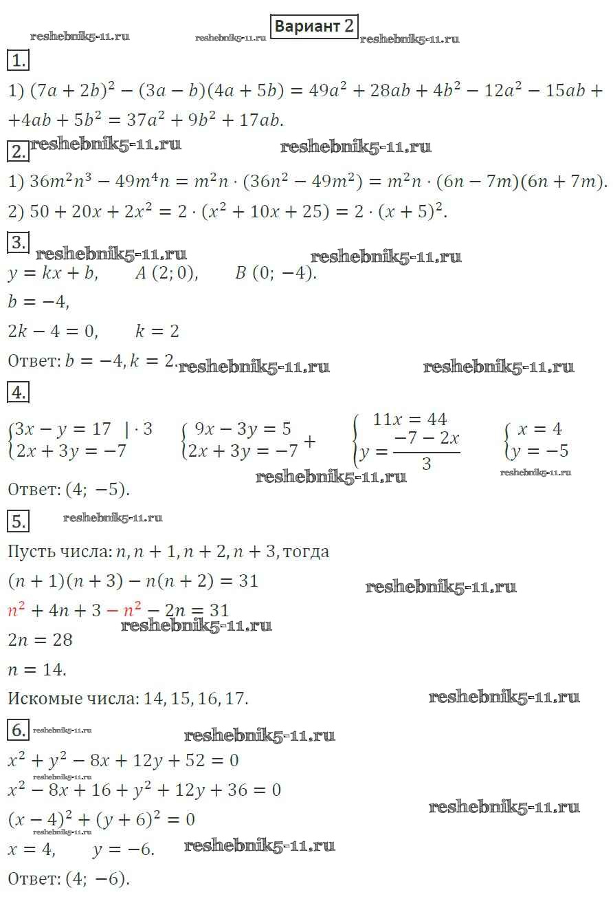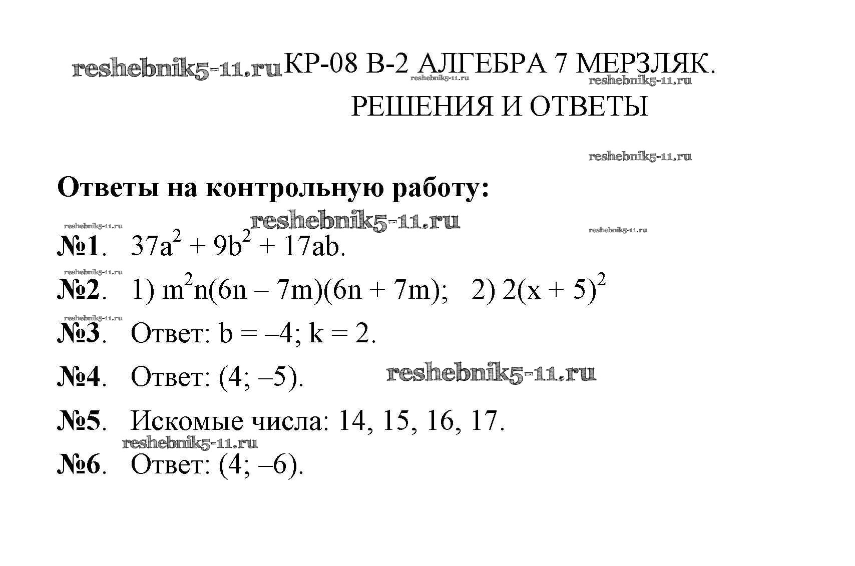 Готовая домашняя работа с ответами по Алгебре за 7 класс Мерзляк, Полонский, Рабинович, Якир Дидактические материалы УМК Вентана-граф 2017 ФГОС - КР-8. Варианты 2
