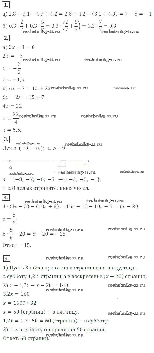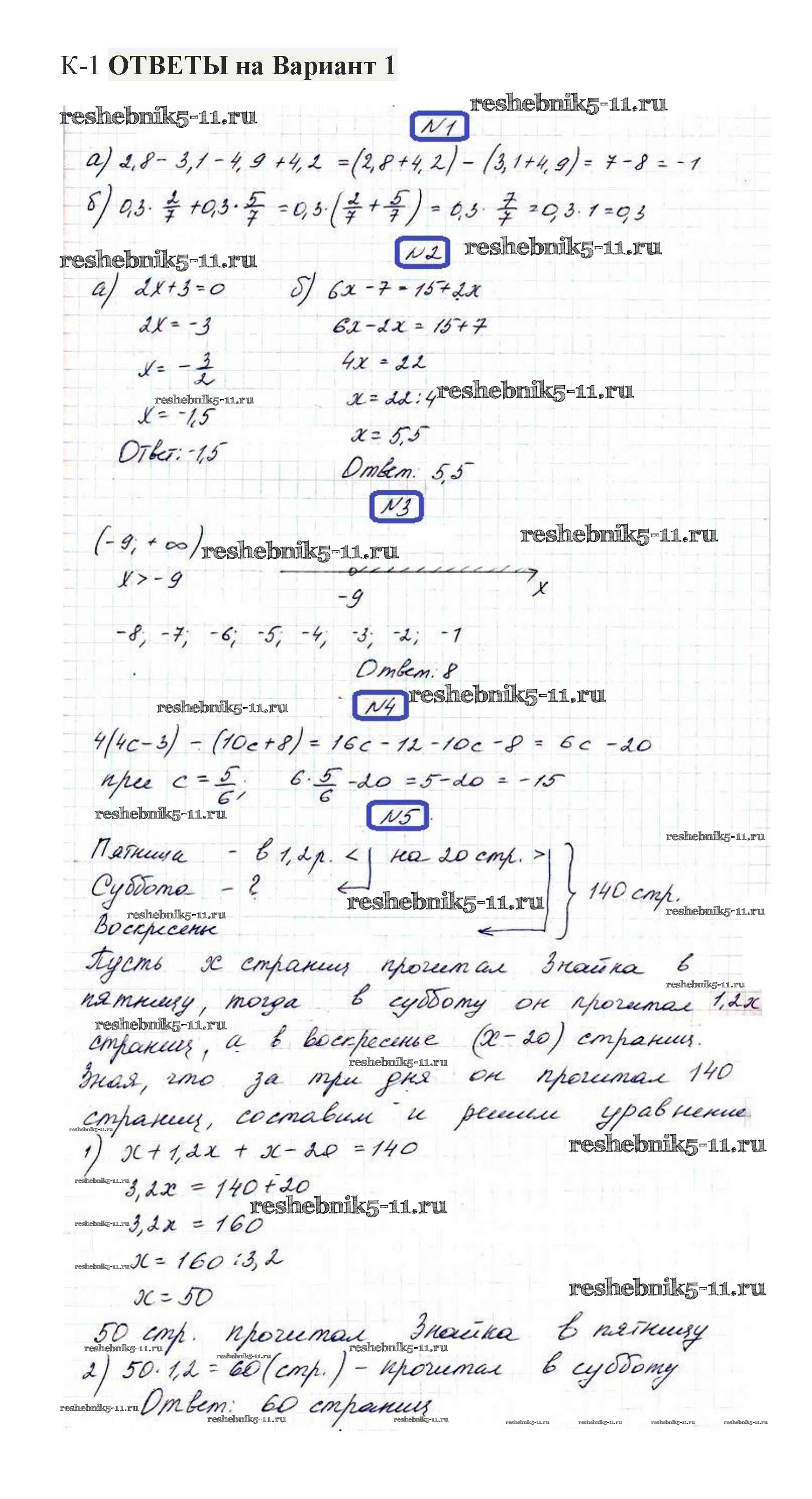 Готовая домашняя работа с ответами по Алгебре за 7 класс Александрова Контрольные работы Мнемозина 2017 ФГОС - КР-1. Варианты 1