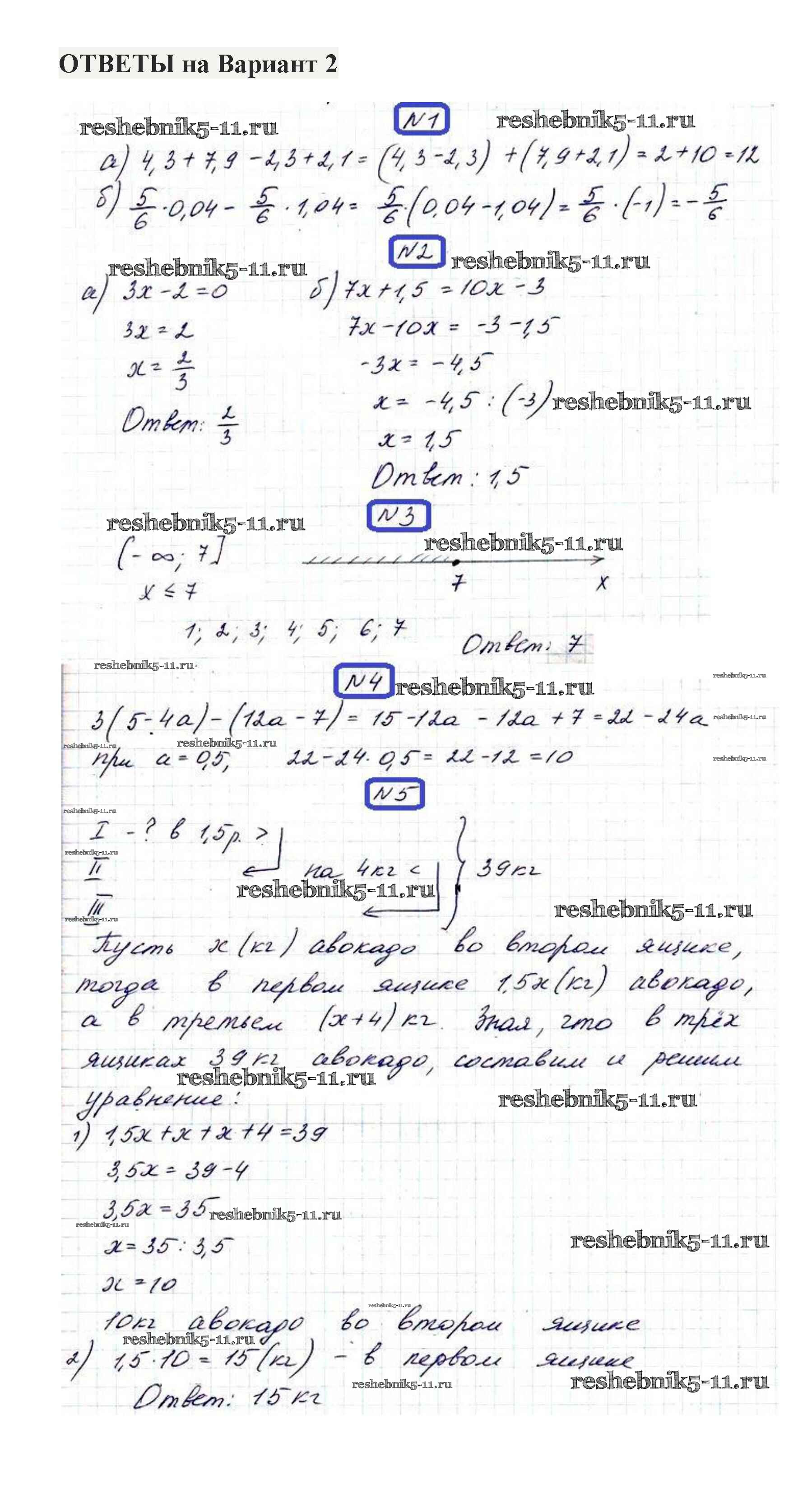 Готовая домашняя работа с ответами по Алгебре за 7 класс Александрова Контрольные работы Мнемозина 2017 ФГОС - КР-1. Варианты 2