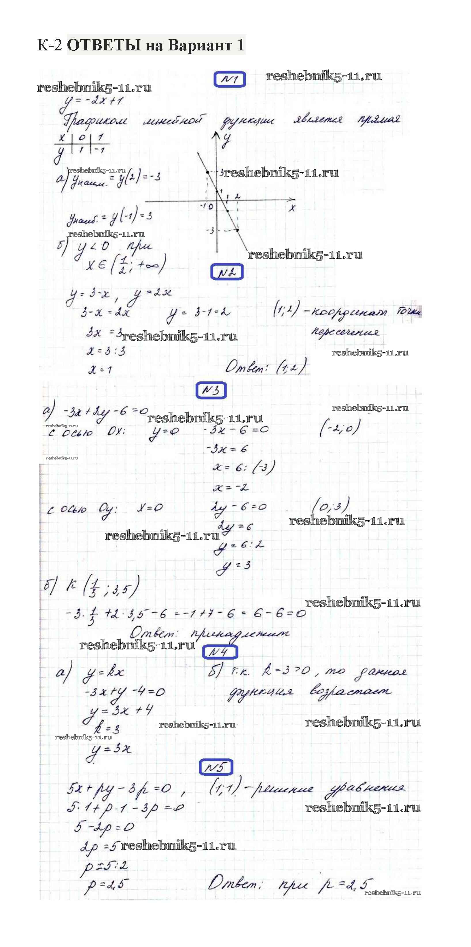 Готовая домашняя работа с ответами по Алгебре за 7 класс Александрова Контрольные работы Мнемозина 2017 ФГОС - КР-2. Варианты 1