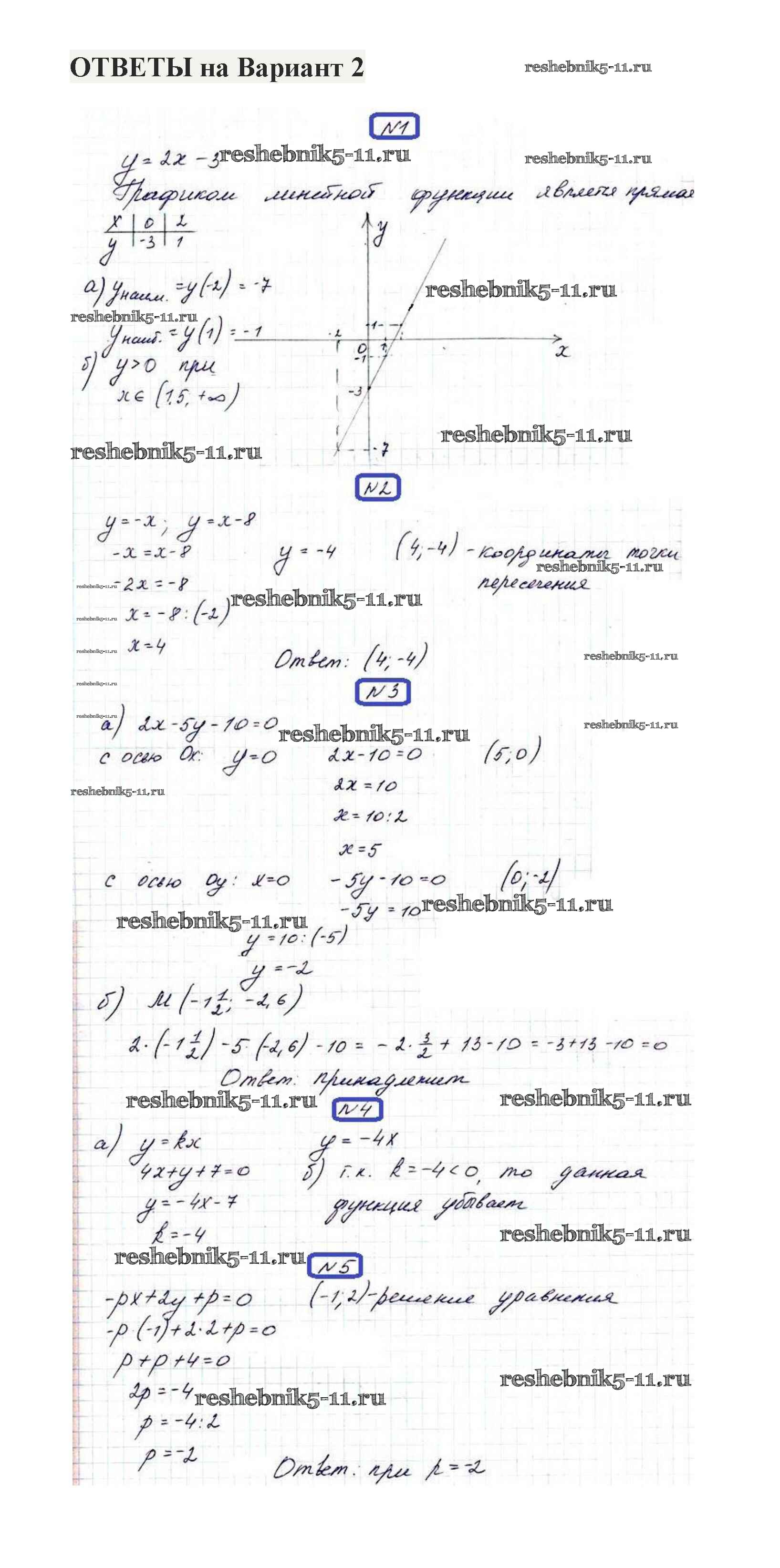 Готовая домашняя работа с ответами по Алгебре за 7 класс Александрова Контрольные работы Мнемозина 2017 ФГОС - КР-2. Варианты 2