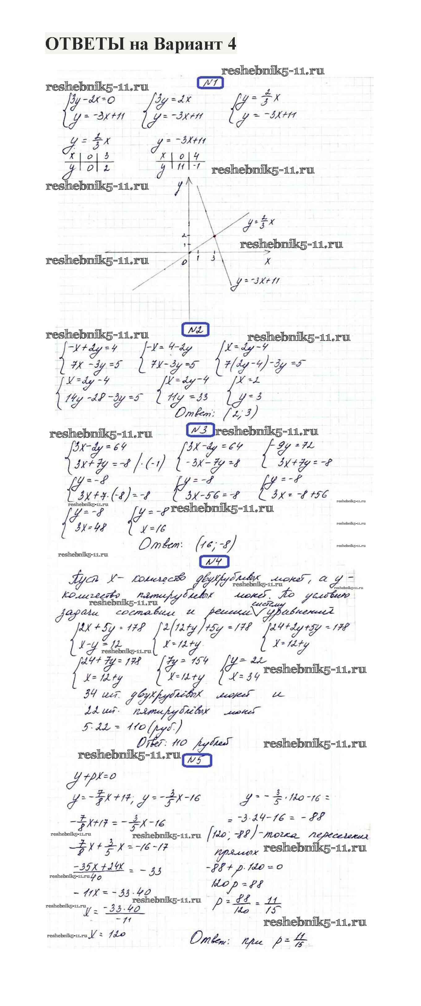 Готовая домашняя работа с ответами по Алгебре за 7 класс Александрова Контрольные работы Мнемозина 2017 ФГОС - КР-3. Варианты 4