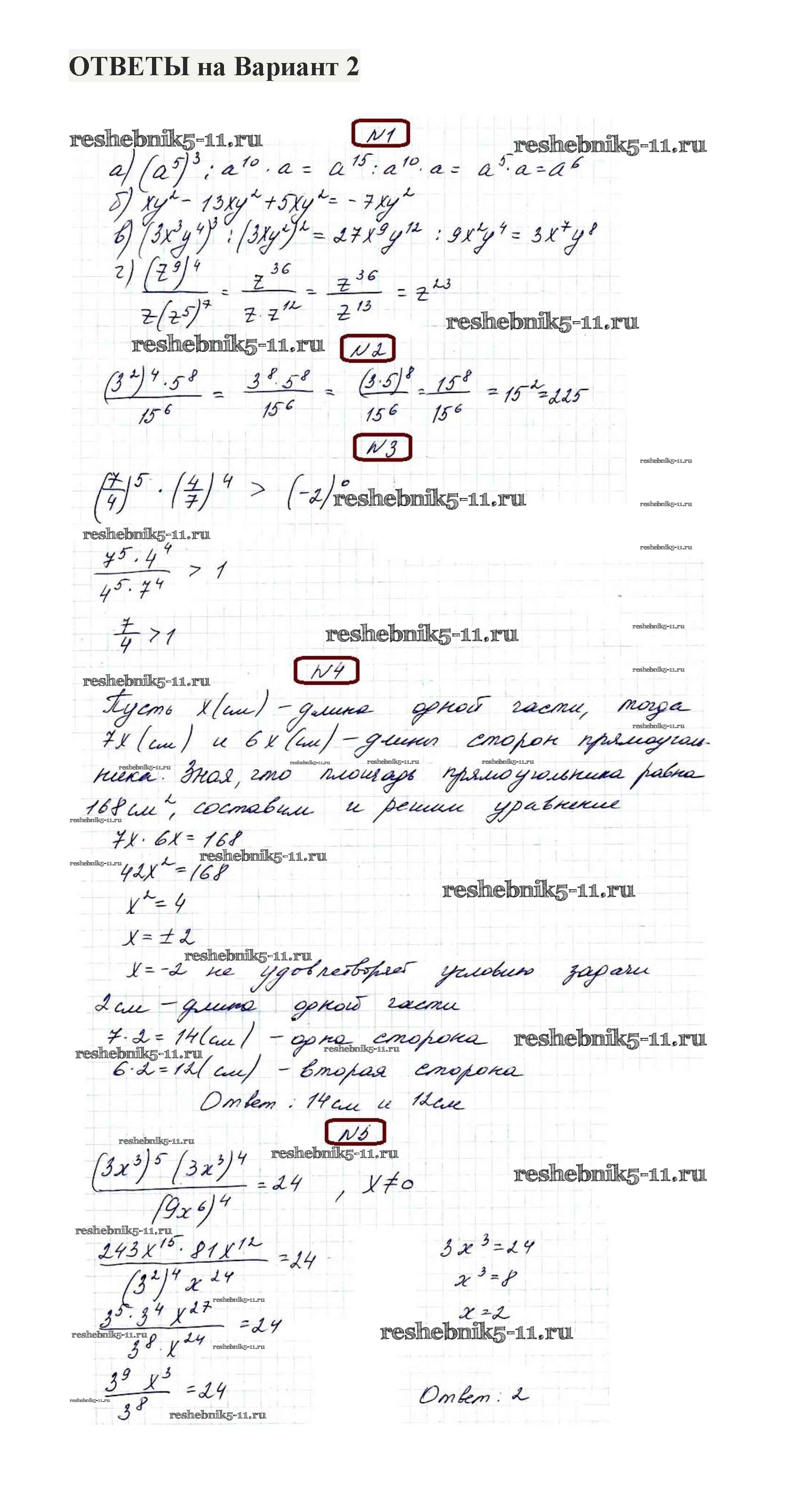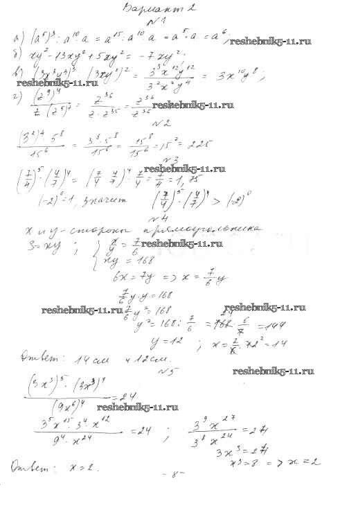 Готовая домашняя работа с ответами по Алгебре за 7 класс Александрова Контрольные работы Мнемозина 2017 ФГОС - КР-4. Варианты 2