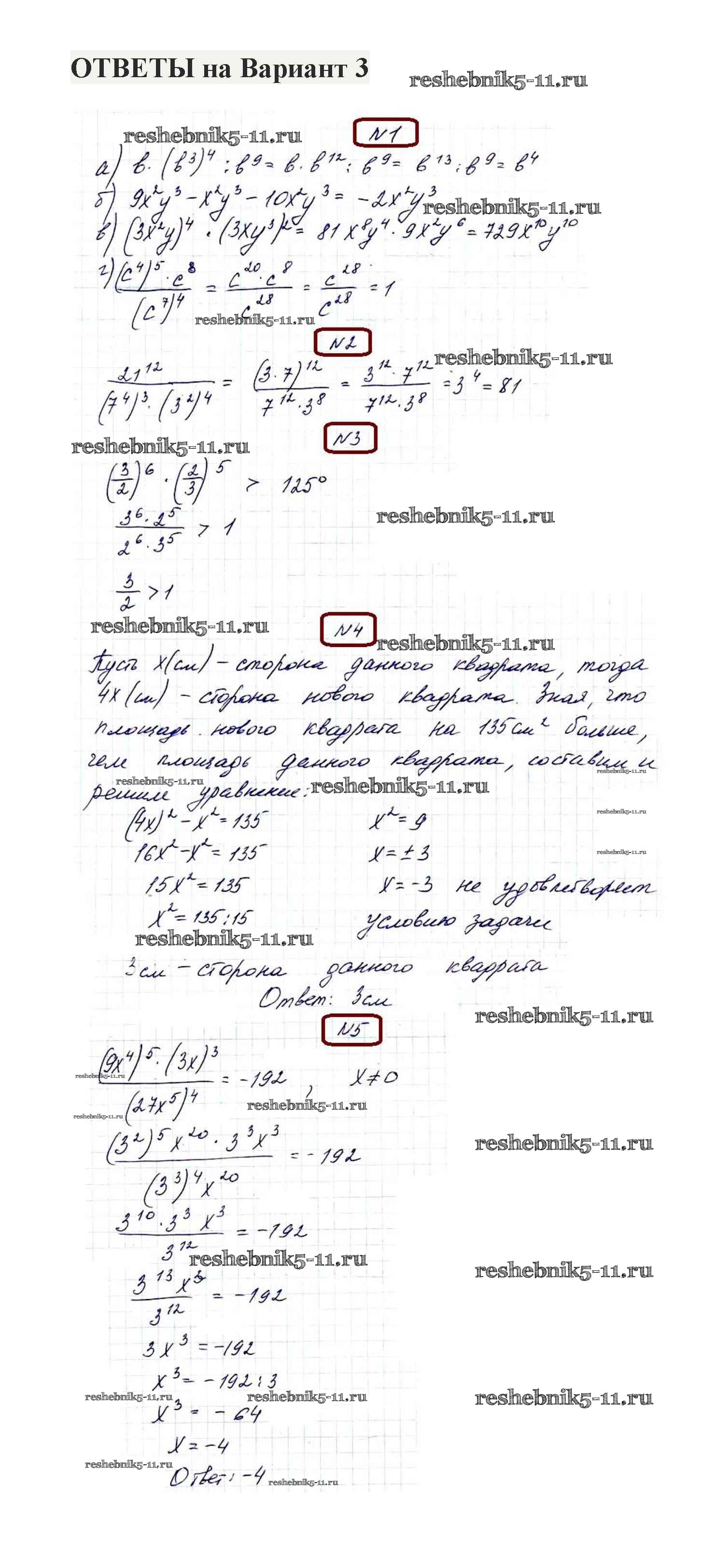 Готовая домашняя работа с ответами по Алгебре за 7 класс Александрова Контрольные работы Мнемозина 2017 ФГОС - КР-4. Варианты 3