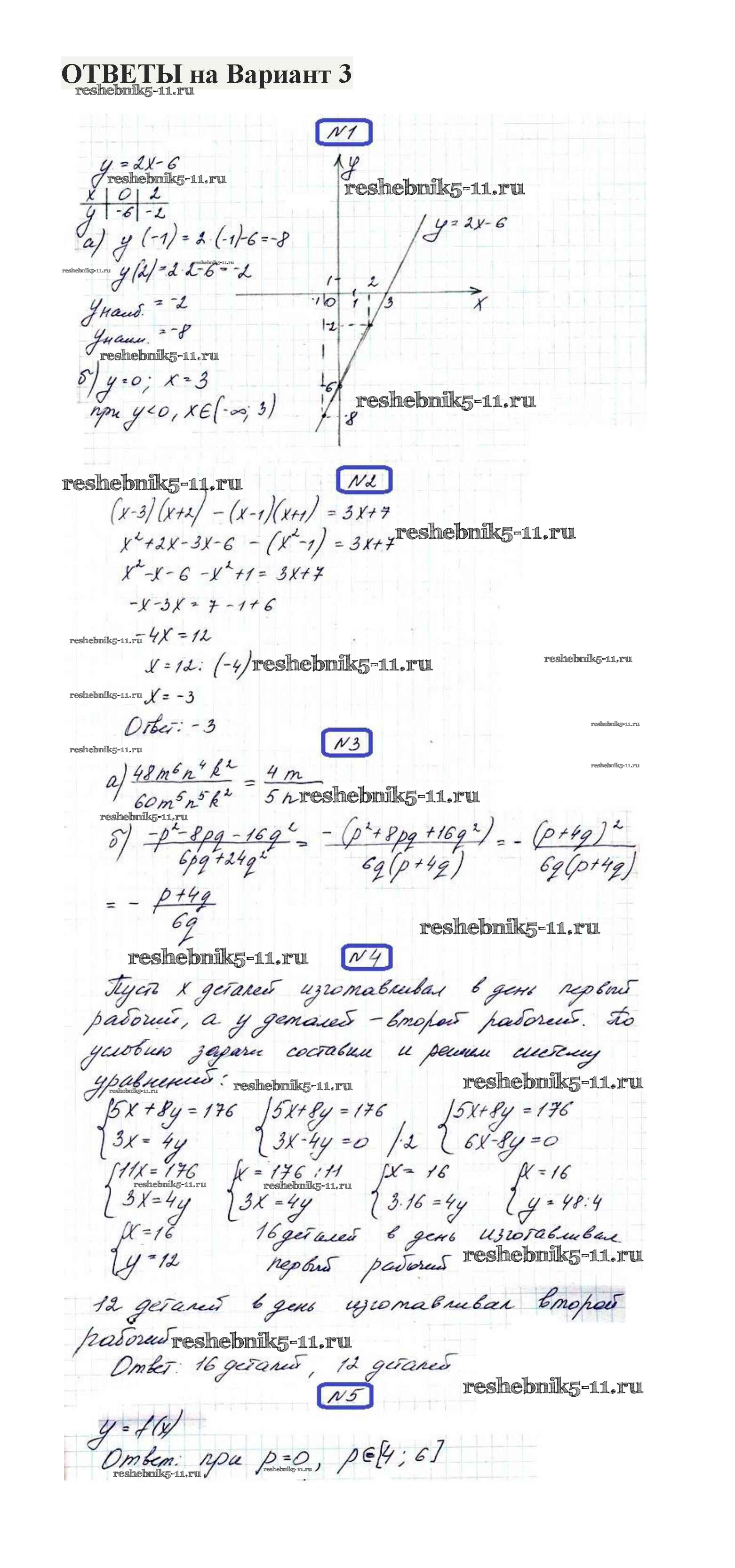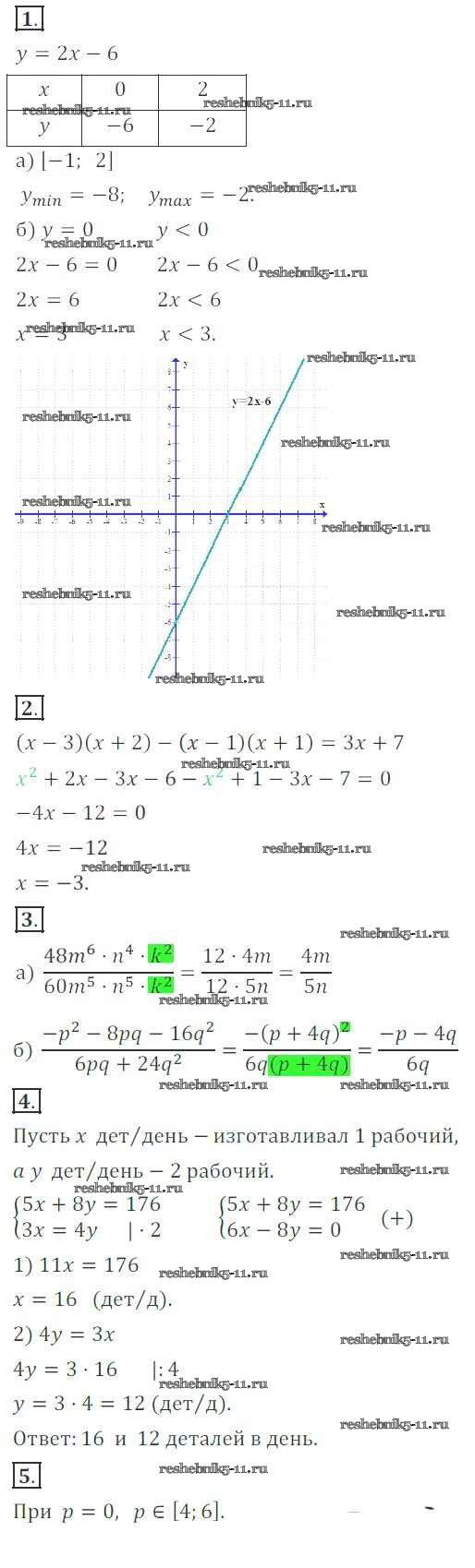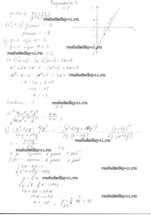 Готовая домашняя работа с ответами по Алгебре за 7 класс Александрова Контрольные работы Мнемозина 2017 ФГОС - Итоговая контрольная работа. Варианты 3