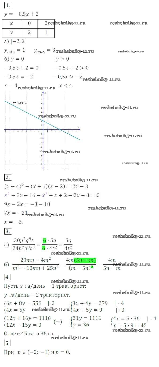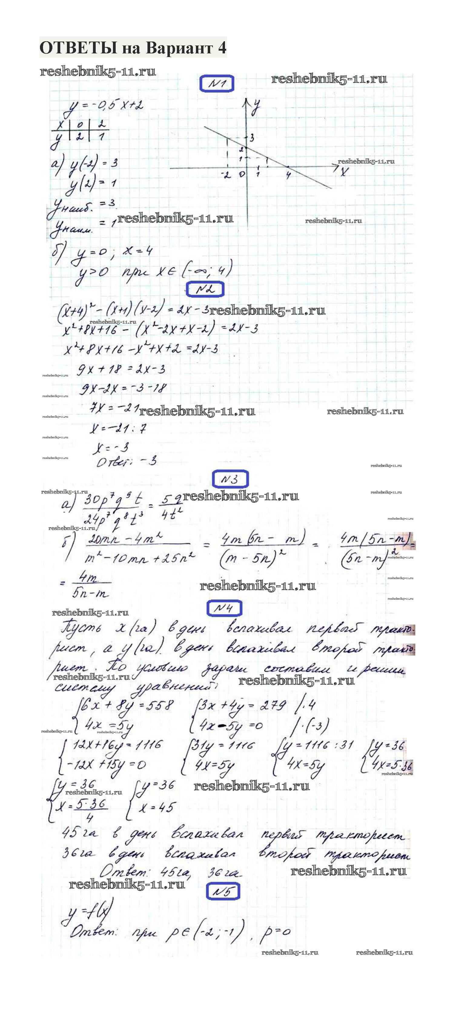 Готовая домашняя работа с ответами по Алгебре за 7 класс Александрова Контрольные работы Мнемозина 2017 ФГОС - Итоговая контрольная работа. Варианты 4