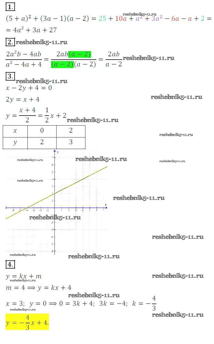 Готовая домашняя работа с ответами по Алгебре за 7 класс Александрова Самостоятельные работы УМК Мнемозина 2016 ФГОС - СР-44. Варианты 2