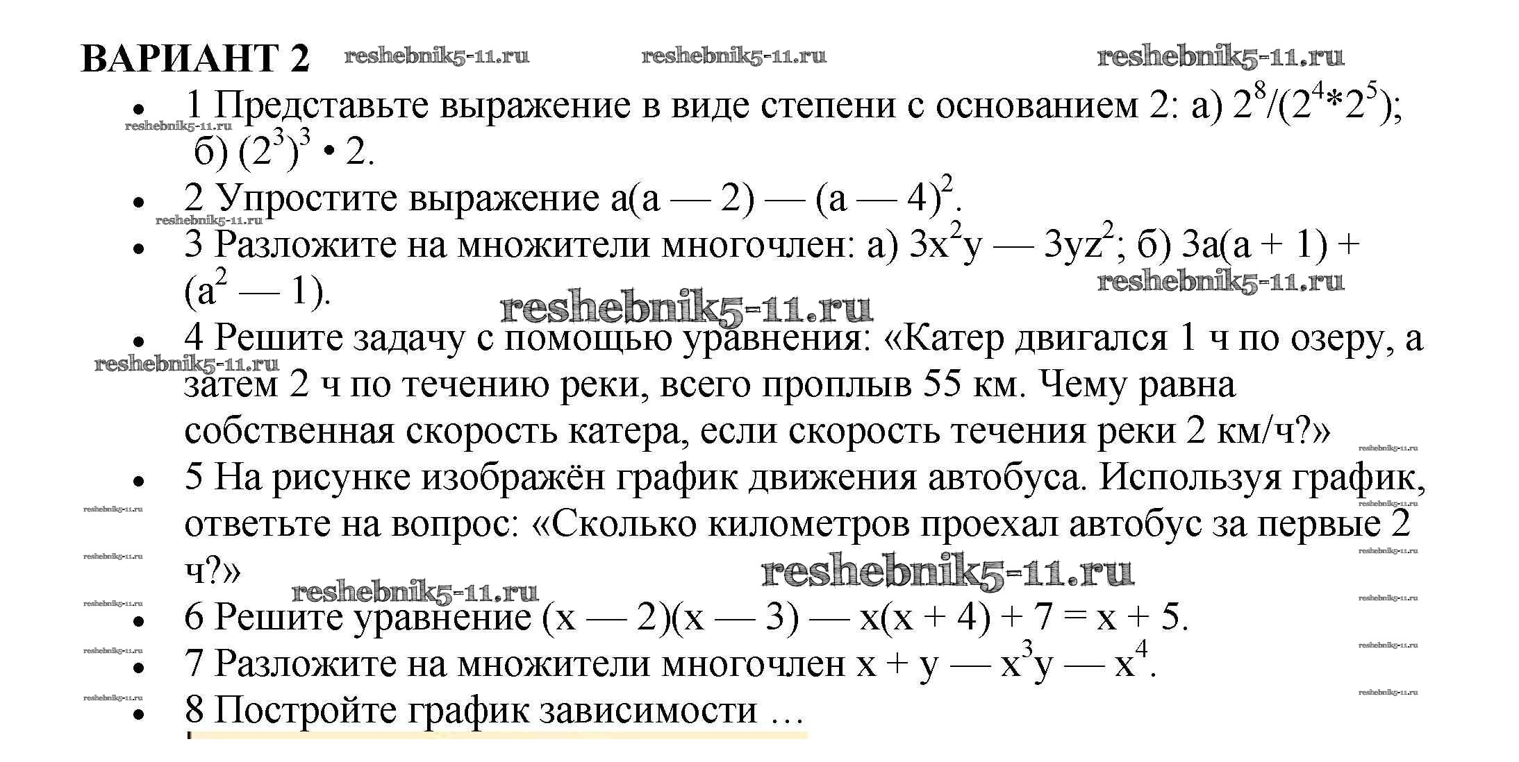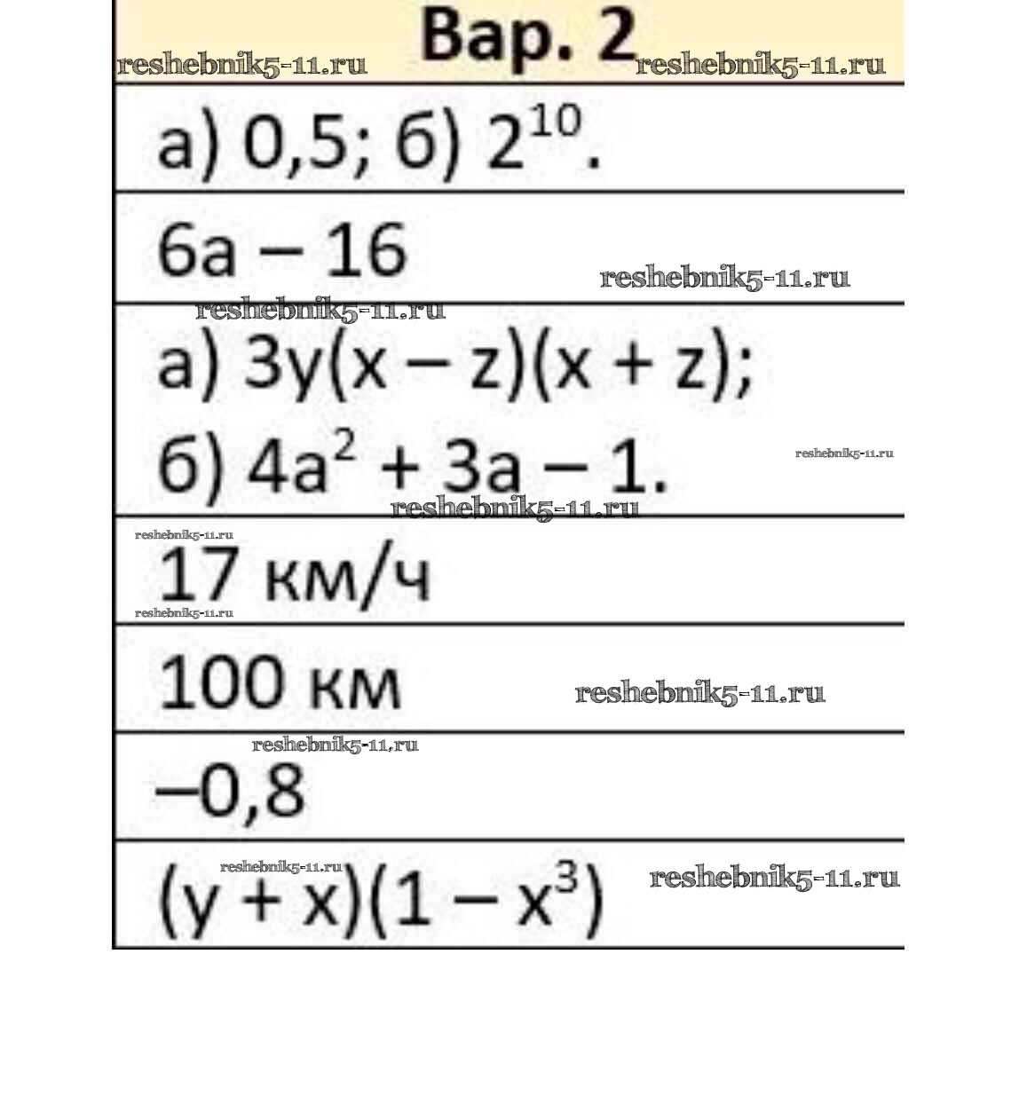 Готовая домашняя работа с ответами по Алгебре за 7 класс Кузнецова, Минаева, Рослова, Суворова Контрольные работы Просвещение 2018 ФГОС - Контрольная работа №11. Итоговая контрольная за курс 7 класса Вариант 2